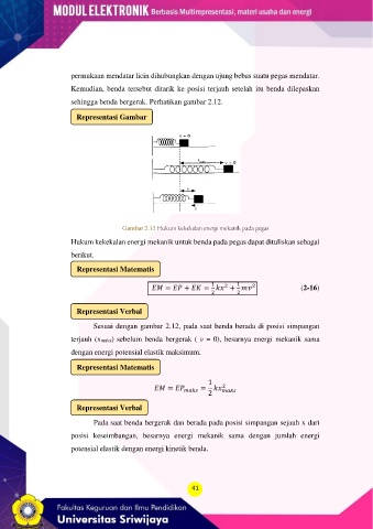 Hukum kekekalan energi mekanik untuk benda pada pegas dapat dituliskan sebagai