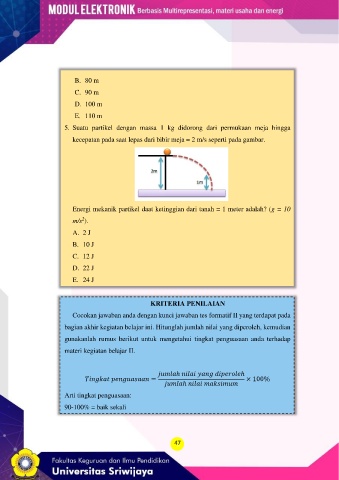 5. Suatu partikel dengan massa 1 kg didorong dari permukaan meja hingga