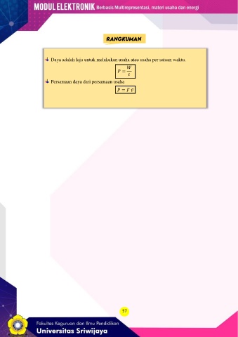 Daya adalah laju untuk melakukan usaha atau usaha per satuan waktu. = Persamaan daya dari persamaan usaha = ̅ 57 a
