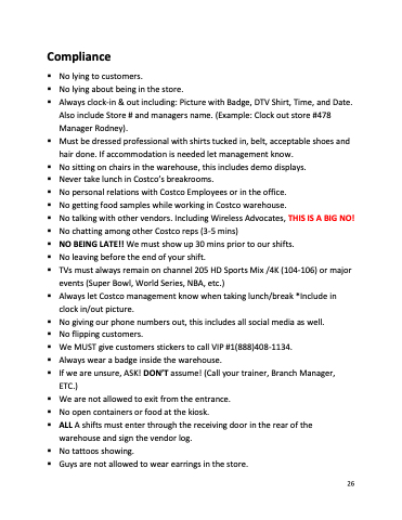 ▪ NO BEING LATE!! We must show up 30 mins prior to our shifts.