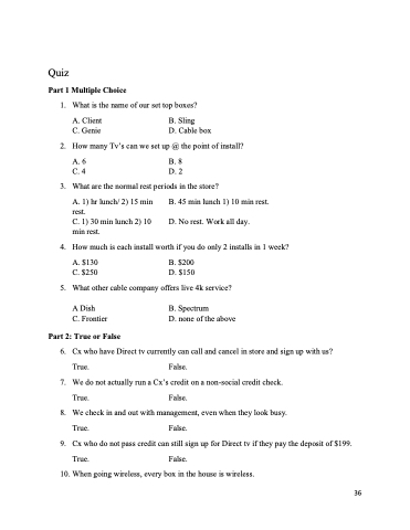 9. Cx who do not pass credit can still sign up for Direct tv if they pay the deposit of $199. True. False.