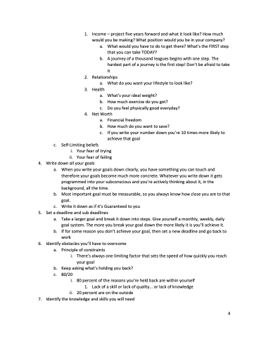 a. When you write your goals down clearly, you have something you can touch and therefore your goals become much more concrete. Whatever you write down it gets programmed into your subconscious and you’re actively thinking about it, in the background, all the time.