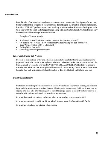 DirecTV offers free standard installation on up to 4 rooms to every Cx that signs up for service. Some Cx's fall into a category of Custom Installs depending on the situation of their installation. Installers WILL NOT perform any actions resulting in a Custom Install without finding out if the Cx is okay with the work and charges that go along with the Custom Install. Custom Installs vary for every install but average between $40-$60.