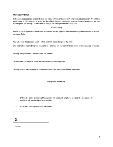 • 1st time the policy is violated; Management will meet with employee and clear the confusion. The employee will also be placed on probation.
