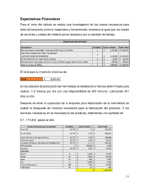 inicio del proyecto como lo maquinara y herramientas necesaria al igual que los costos