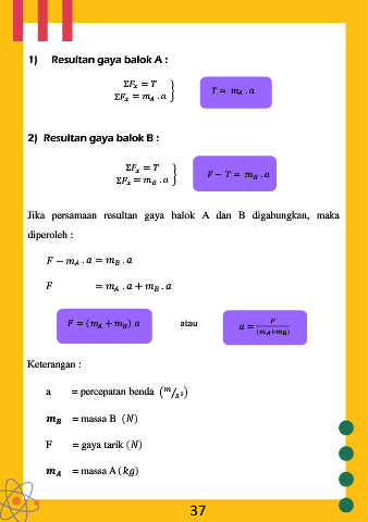 Jika persamaan resultan gaya balok A dan B digabungkan, maka