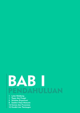 BAB I PENDAHULUAN 1 Latar Belakang 1 Tugas dan Fungsi 2 Struktur Organisasi 8 Sumber Daya Manusia 12 Sarana dan Prasarana 15 Kondisi dan Tantangan