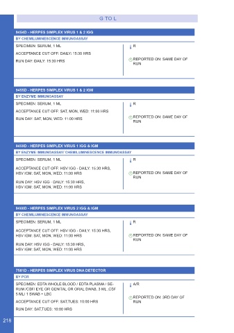 ACCEPTANCE CUT OFF: HSV IGG - DAILY: 15:30 HRS,