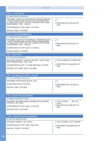 SPECIMEN: SERUM + CLINICAL HISTORY + (AGE & GEN- 2-8°C(2 WEEKS); F (6 MONTHS)