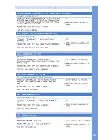 SPECIMEN: SERUM (AGE + SEX TO BE MEN- 2-8°C (48 HRS); F ( >48 HRS)