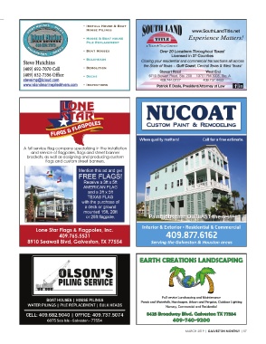 Courtesy images Ponds and Waterfalls, Hardscapes, Arbors and Pergolas, Outdoor Lighting Full service Landscaping and Maintenance Nursery, Commercial and Residential MARCH 2019 | GALVESTON MONTHLY | 57