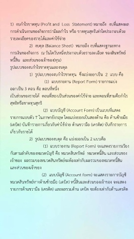 1) งบกําไรขาดทุน (Profit and Loss Statement) หมายถึง งบที่แสดงผล