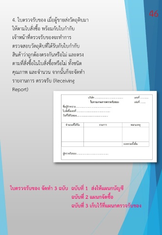 ใบตรวจรับของ จัดท ำ 3 ฉบับ ฉบับที่ 1 ส่งให้แผนกบัญชี