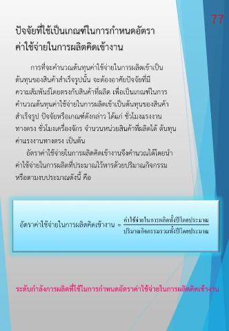 การที่จะค านวณต้นทุนค่าใช้จ่ายในการผลิตเข้าเป็น