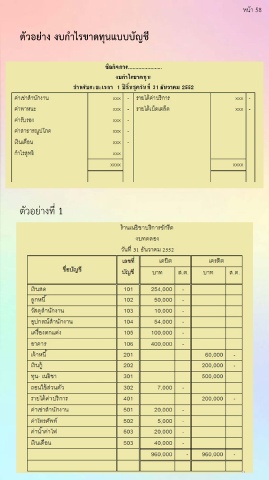 หนา 58 ตัวอยาง งบกําไรขาดทุนแบบบัญชี ตัวอยางที่ 1