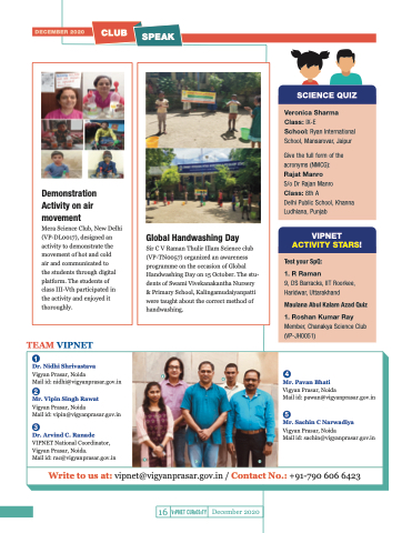Mera Science Club, New Delhi (VP-DL0017), designed an activity to demonstrate the movement of hot and cold