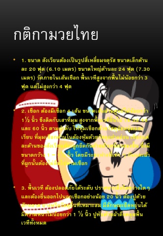 • 1. ขนาด สังเวียนต้องเป็นรูปสี่เหลี่ยมจตุรัส ขนาดเล็กด้าน