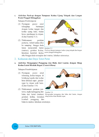 c. Aktivitas Push-up dengan Tumpuan Kedua Ujung Telapak dan Lengan