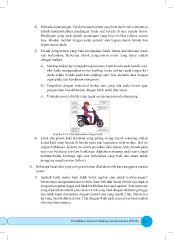 c) Usahakan posisi duduk tetap tegak saat pengereman berlangsung.
