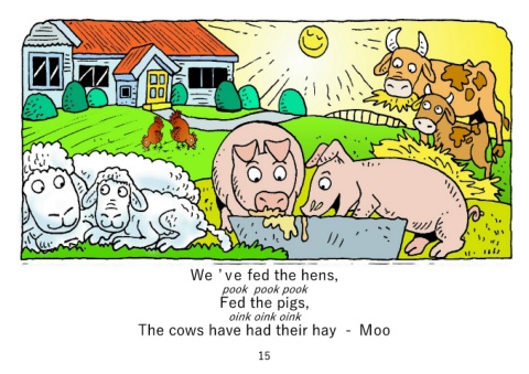 We ’ ve fed the hens, pook pook pook Fed the pigs, oink oink oink The cows have had their hay - Moo 15
