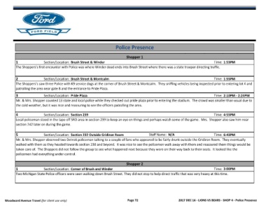 Woodward Avenue Travel (for client use only) Page 72 2017 DEC 16 - LIONS VS BEARS - SHOP 4 - Police Presence