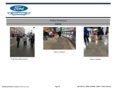 Woodward Avenue Travel (for client use only)                             Page 76                       2017 DEC 16 - LIONS VS BEARS - SHOP 4 - Police Presence