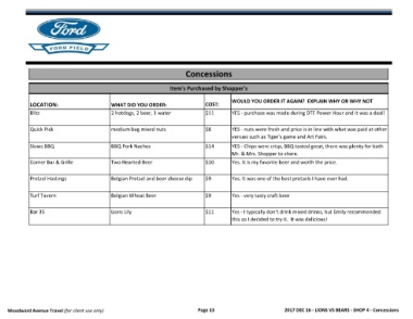 Woodward Avenue Travel (for client use only) Page 13 2017 DEC 16 - LIONS VS BEARS - SHOP 4 - Concessions