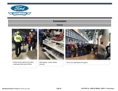 Woodward Avenue Travel (for client use only) Page 16 2017 DEC 16 - LIONS VS BEARS - SHOP 4 - Concessions