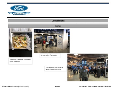 Woodward Avenue Travel (for client use only)                             Page 17                          2017 DEC 16 - LIONS VS BEARS - SHOP 4 - Concessions