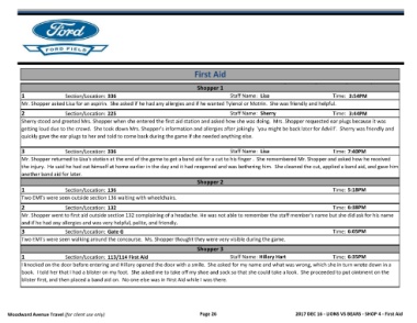 Woodward Avenue Travel (for client use only) Page 26 2017 DEC 16 - LIONS VS BEARS - SHOP 4 - First Aid