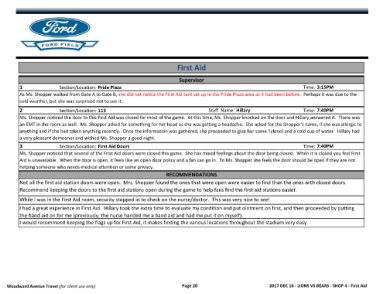 Woodward Avenue Travel (for client use only) Page 28 2017 DEC 16 - LIONS VS BEARS - SHOP 4 - First Aid