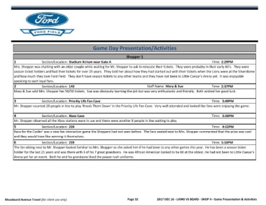 Woodward Avenue Travel (for client use only) Page 32 2017 DEC 16 - LIONS VS BEARS - SHOP 4 - Game Presentation & Activities