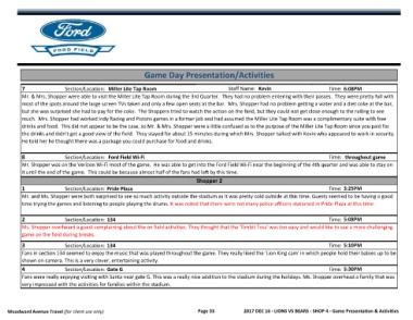 Woodward Avenue Travel (for client use only) Page 33 2017 DEC 16 - LIONS VS BEARS - SHOP 4 - Game Presentation & Activities