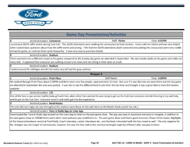 Woodward Avenue Travel (for client use only) Page 35 2017 DEC 16 - LIONS VS BEARS - SHOP 4 - Game Presentation & Activities