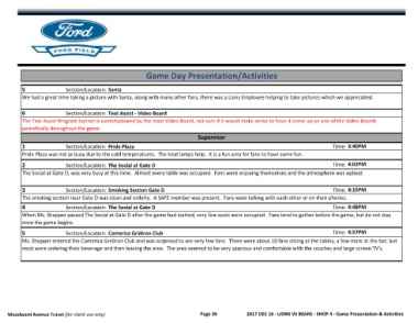 Woodward Avenue Travel (for client use only) Page 36 2017 DEC 16 - LIONS VS BEARS - SHOP 4 - Game Presentation & Activities