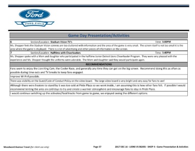 Woodward Avenue Travel (for client use only) Page 37 2017 DEC 16 - LIONS VS BEARS - SHOP 4 - Game Presentation & Activities