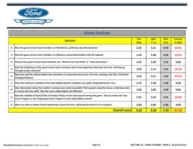 44 Did you hear guest service team members say “Welcome to Ford Field” or “Enjoy the Game”? 3.25 3.38 3.31 0.06