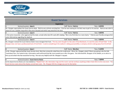 Woodward Avenue Travel (for client use only) Page 44 2017 DEC 16 - LIONS VS BEARS - SHOP 4 - Guest Services