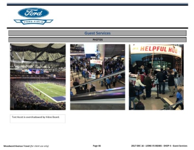 Guest Services PHOTOS Question Text Assist is overshadowed by Video Board. Woodward Avenue Travel (for client use only) Page 46 2017 DEC 16 - LIONS VS BEARS - SHOP 4 - Guest Services