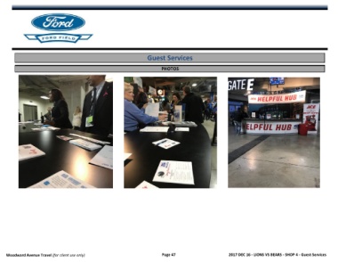 Guest Services PHOTOS Question Woodward Avenue Travel (for client use only) Page 47 2017 DEC 16 - LIONS VS BEARS - SHOP 4 - Guest Services