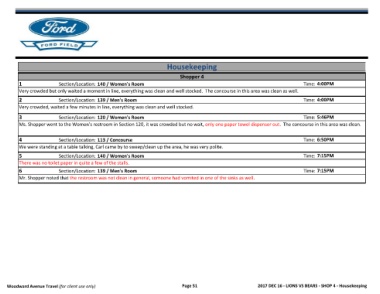 Woodward Avenue Travel (for client use only) Page 51 2017 DEC 16 - LIONS VS BEARS - SHOP 4 - Housekeeping