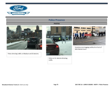 Woodward Avenue Travel (for client use only)                             Page 75                       2017 DEC 16 - LIONS VS BEARS - SHOP 4 - Police Presence