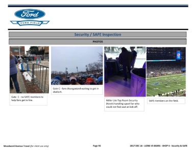 Woodward Avenue Travel (for client use only) Page 93 2017 DEC 16 - LIONS VS BEARS - SHOP 4 - Security & SAFE