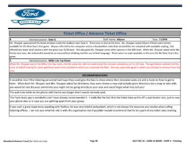 Woodward Avenue Travel (for client use only) Page 98 2017 DEC 16 - LIONS VS BEARS - SHOP 4 - Ticketing