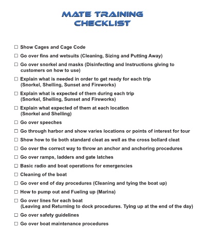 □ Go over end of day procedures (Cleaning and tying the boat up)