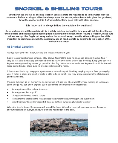 Whether at the snorkel or shelling location you as a mate are required to be in the water with the