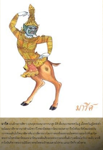 มำรีศ เป์นยักษ์กำยสีขำว เป์นบุตรของนำงกำกนำสูร มีศักดิ์เป์นน์ำของทศกัณฐ์เมื่อทศกัณฐ์ได์ฟ์งค ำ