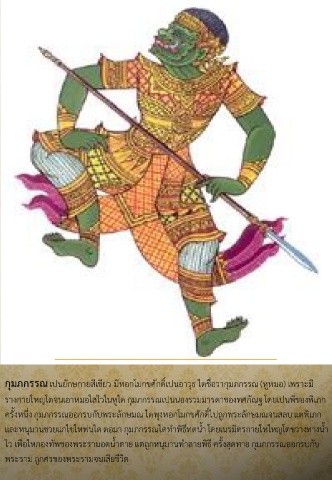 ไว ์ เพื่อให์กองทัพของพระรำมอดน้ ำตำย แต์ถูกหนุมำนท ำลำยพิธี ครั้งสุดท์ำย กุมภกรรณออกรบกับ