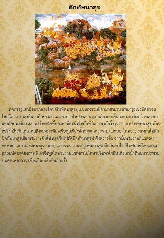 มือทัพนำสูรเสีย พระรำมจึงสั่งให์สุครีพไปตัดมือทัพนำสูรฟ์ำจึงสว์ำงขึ้น จำกนั้นพระรำมก็แผลงศร
