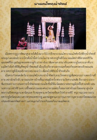 มณโฑก ำลังท ำพิธีสัญชีพหุงน้ ำทิพย์พอดี เมื่อรู์เรื่องก็อำสำออกรบแต์ทั้งสองก็ต์องศรพระลักษมณ์จน